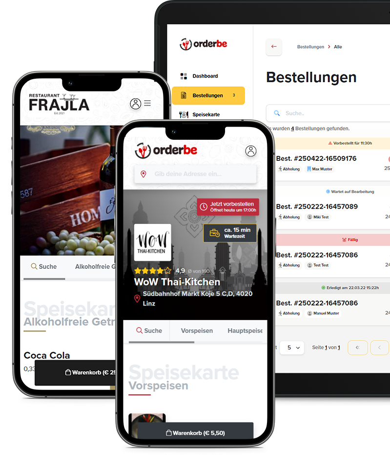 Ordebe ist eine online Essensbestellplattform sowohl auch ein Produkt für die Gastronomie. Orderbe bietet neben der Online-Plattform auch eine eigene Webseite mit einer integrierten Bestellplattform zum pauschalen Monatsbetrag für alle Gastronomiebetreiber an.