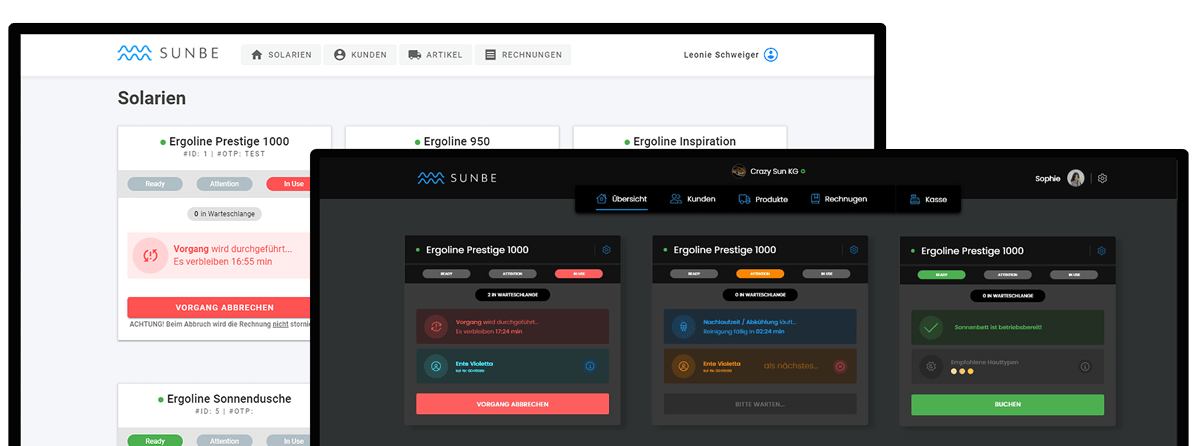 Durch gemeinsame Entwicklung mit Sonnenstudiobetreiber, wurde Sunbe passform für die Studiobetreiber angepasst. Durch ein modernes System bei der Verwaltung durch die Behires, sind laufende Aktualisierungen garantiert. Mit der Anwendung von Cloud-Speicherung, können die Filialen von überall aus, in Echzeit im Blick behalten werden.